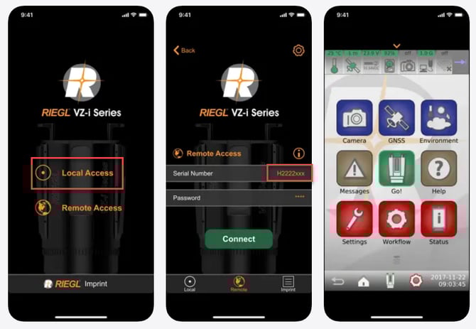 Now, open the RIEGL VZ-i series app, and tap on "Local Access".