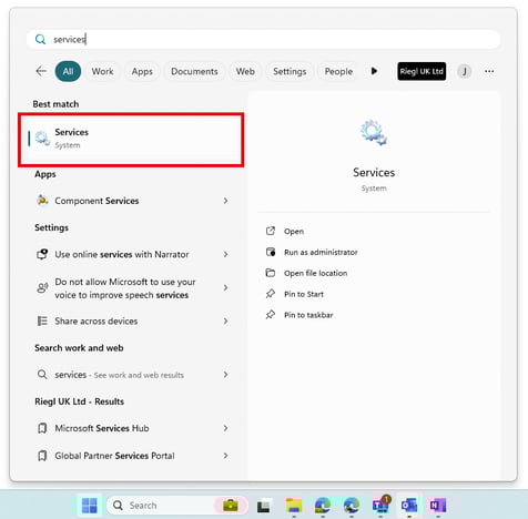To disable LicenseProxy service, open the Windows Services app by typing services in the Windows Search box.