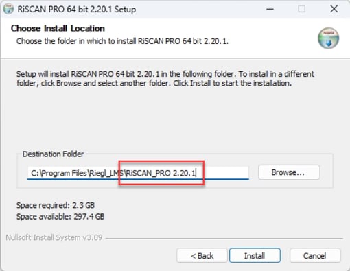 To install a new version of RiSCAN PRO alongside an existing installation, you simply need to edit the installation path during the installation wizard: