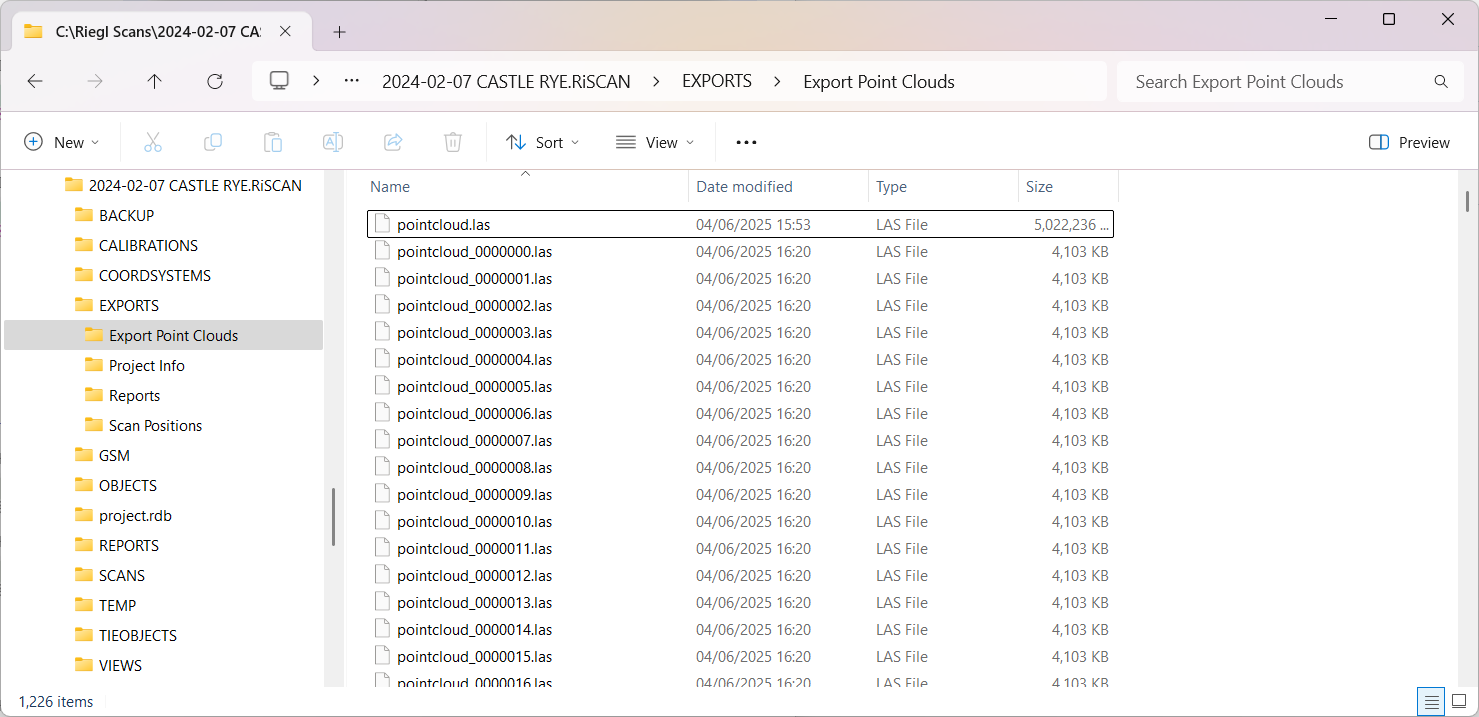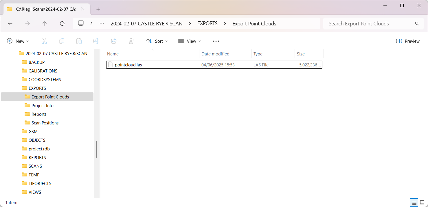 You can now import these las files into RiSCAN PRO. Normally, you would import them into the OBJECTS > POINTCLOUDS folder, where they will be converted into the native RISCAN PRO pointcloud format for further processing.